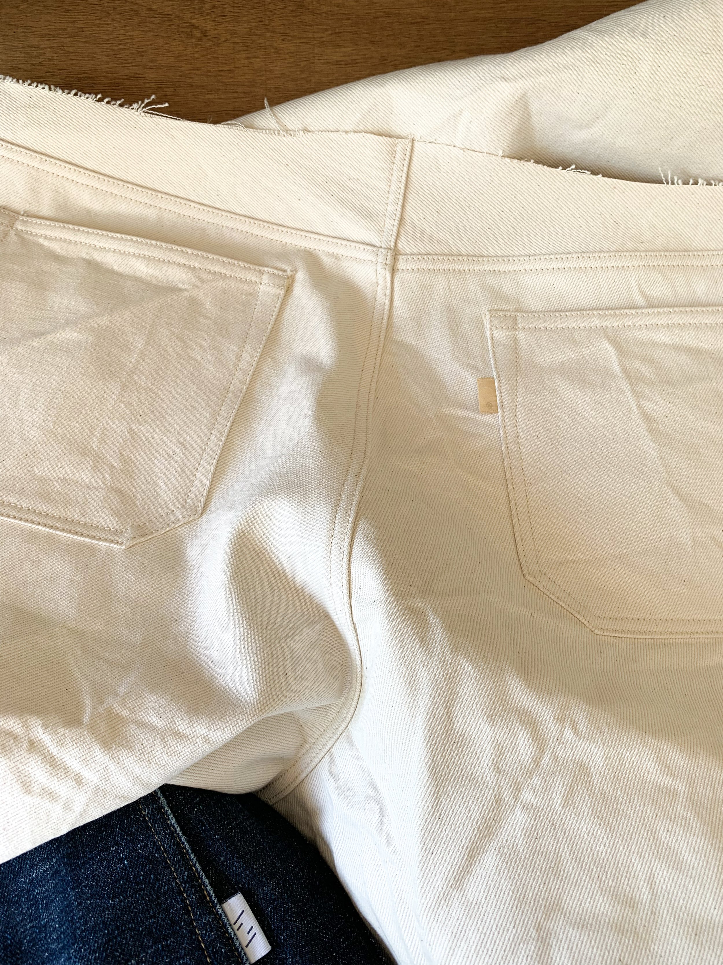 Your jeans are now ready and will be complete with waistband, full stitching, hand sewn buttonholes and hardware. They will also have been washed to remove any chalk marks from the making process, and soften the cloth for wear.